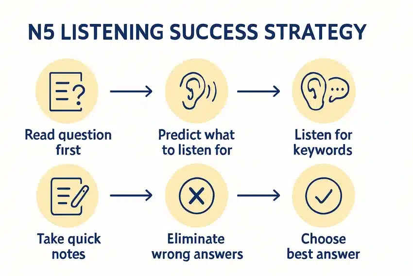 - Practice with JLPT-specific listening materials (official practice tests, textbook CDs)